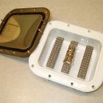 Terminal Box, 72 terminals, 216 wires, 600 volts. 30 amps per terminal, submersible to 15 feet. 3 Type 6TB24 terminal boards mounted in an 8 x 10 x 5" deep brass enclosure. P/N M24558/9-525 per MIL-T-24558/9. NSN 5940-00-351-2225.
