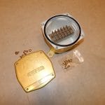 Terminal Box, 10 terminal, 30 wires, 600 volts, 30 amps per terminal, submersible to 15 feet. One (1) Type 6TB10 terminal board mounted in a 4" brass enclosure. P/N M24558/3-528 per MIL-T-24558/3. NSN 5940-00-351-2223.