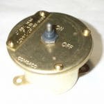 Switch assembly, toggle, DPST, 10 Amp AC, 5 Amp DC, 125 V, non-magnetic, watertight. Consists of a double pole single throw (on-off) toggle switch mounted to the cover of a nominal 2-1/2" round brass enclosure. A rubber boot over the toggle provides watertight integrity along with the gasketed cover of the enclosure. Electrical connections are made directly to the switch contacts which are provided with #6-32 screws. This item is manufactured in accordance with NavShips Drawing 9-S-74427 and Comsaco Drawing 404-780.2. NSN 5930-00-522-1425.