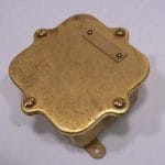 Enclosure assy, brass, size 4x4x2-13/16" deep, submersible to 15 feet. Part number M24142/1-001 per MIL-E-24142/1. NSN 5975-00-122-6048.