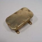 Enclosure, brass, size 2-1/8 x 4-1/2 x 2-1/4" deep (inside dimensions). Submersible to 15 feet. Used for a number of standard "Symbol" items. Its relatively small size makes this enclosure useful for various assemblies needed to fit close quarters. Normally furnished empty. Can be modified to include mounting plates, brackets, etc. to suit your requirements. If a smaller size is needed, see the part number M24142/9-001 which is 2-1/8 x 3 x 2-1/4". This assembly is military part number M24142/10-001 per MIL-E-24142/10. The NSN is 5975-01-278-9821.