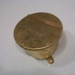 Fuse box, single circuit, 2 poles, 125 Volts, for 0-30 Amp midget fuses, Submersible to 15 feet. Consists of a 5" round enclosure per MIL-E-24142/5 fitted with an insulator having 2 sets of fuse clips that accommodate Type F09 fuses. Wire connections made to #8-32 screw terminals. Military Part Number M24646/18-001 per MIL-DTL-24646/18. NSN 5920-00-355-4729.
