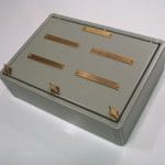 Fuse panel, Totally Enclosed, Steel, 450 Volts, 3 phase feed, 4 three phase or 6 single phase branch circuits, for Type F15 (250 volt) or F61 (450 volt) fuses. Max feeder size 75 MCM. Max branch cable size 40 MCM. SYM544 per Mil-DTL-24646/4. Military Part Number M24646/4-002. NSN 5920-00-178-1625 or 5920-01-418-1752.
