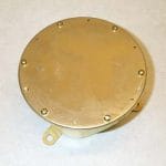 Enclosure assy, brass, size 4" round (nominal) x 3" deep. Submersible to 15 feet. The middle size of the family of round enclosures shown on MIL-E-24142/5. Part number M24142/5-002 per MIL-E-24142/5. NSN 5975-00-096-2717.