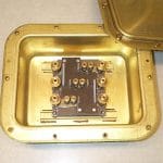 Terminal box, connection, 500 volts, 3 phase, Submersible to 15 feet, non-magnetic. Provided with main terminals for 200 MCM cables that permit feeding through the box and taps for up to 2 three phase branch circuits using up to 75 MCM cables. Terminals and bus bar are mounted on an insulator which is mounted in a 10 x 13 brass enclosure per MIL-E-24142/6-004. SYM575.1 per MIL-DTL-24558/29. Military Part Number M24558/29-575.1. NSN 5940-00-215-5966. Approximate weight 31 pounds.