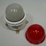 Fixture, lighting, incandescent, 110 watts, 120 volts AC, watertight, with frosted white globe. SYM112 per MIL-DTL-16377/26. Part number M16377/26-112 per MIL-DTL-16377/26. NSN 6210-00-635-8817 and 6210-00-635-8819 for body and globe respectively. Complete fixture not stocked in the supply system.
