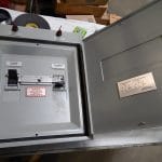 Panel, manual bus transfer, 250 AMP, drip-proof to 45 degrees, steel enclosure, with door, with two (2) NQB-A250 circuit breakers installed.