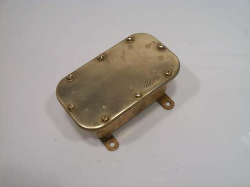 Enclosure, brass, size 2-1/8 x 4-1/2 x 2-1/4" deep (inside dimensions). Submersible to 15 feet. Used for a number of standard "Symbol" items. Its relatively small size makes this enclosure useful for various assemblies needed to fit close quarters. Normally furnished empty. Can be modified to include mounting plates, brackets, etc. to suit your requirements. If a smaller size is needed, see the part number M24142/9-001 which is 2-1/8 x 3 x 2-1/4". This assembly is military part number M24142/10-001 per MIL-E-24142/10. The NSN is 5975-01-278-9821.