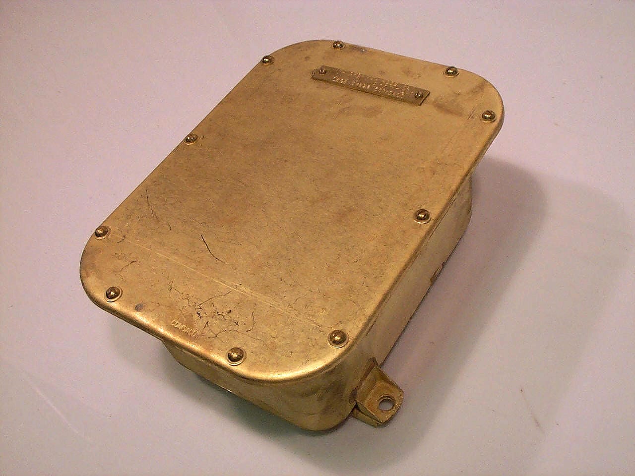 Terminal box, 20 terminals, 80 wires max, 600 volts, 40 amps max per terminal, submersible to 15 feet. One (1) Type 4TB20 terminal board mounted in a 6x9x4-1/2" deep brass enclosure. Part number M24558/4-432.1 per MIL-T-24558/4. NSN 5940-00-215-5962. Previously covered by NavShips drawing 9-S-74135. Need more terminals? We can supply this with a Type 6TB24 terminal board that will provide 24 terminals rated at 600 volts, 30 amps, 4 wires per terminal.