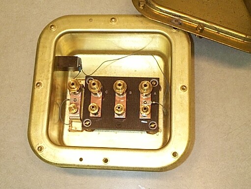 Connection box, for 400 Hz aircraft servicing. 115/200 Volts, 170 Amps, 3 phase, 4 wire, Spraytight. For distribution of 400 Hz power from the power supply to the portable cable used to service the aircraft. Consists of a 10 x 10 x 5" deep brass enclosure, P/N M24142/6-003 per MIL-E-24142/6 with 3 insulated terminal assemblies and one terminal assembly grounded to the box. The power terminals accommodate a feeder cable up to 200 MCM and a portable cable size of 75 MCM. The ground terminal accommodates 200 MCM on the feeder side and 40 MCM on the portable cable side. An indicator light with green lens is provided to indicate power available. Cable entrance is made by the installing activity through the side walls of the box using appropriate stuffing tubes to maintain the integrity of the enclosure. Omission of the indicator light raises the degree of enclosure to submersible (SBM-15) if desired. SYM764.2 is manufactured per NavShips Drawing 9000-S6202-74362. NSN not assigned.