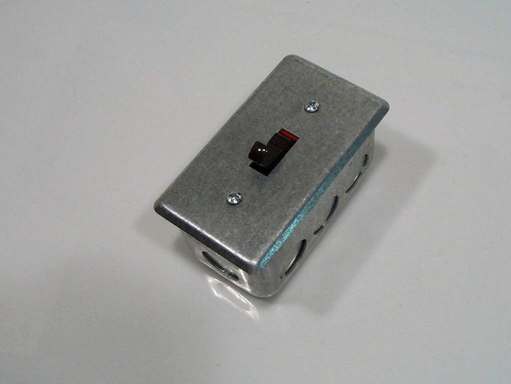 Switch assembly, toggle, double pole, single throw, 125 volts, 20 amps, totally enclosed, steel enclosure. Consists of a heavy duty toggle switch mounted in a drawn steel box designed for surface mounting, with a steel cover. SYMnumber 780.5 per Navsea drawing 5184170 Method G-7-A/1. NSN 5930-00-643-9424 or 5930-01-112-8495. Can also be supplied with a 3/8-16 threaded female bushing for stud mounting (SYM780.5-S) or with a flange for flush mounting (SYM780.5-R).