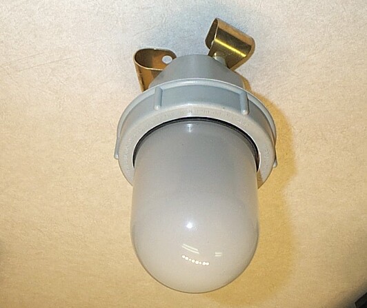 Fixture, lighting, 50 Watt, White, 120 Volts, Watertight, Plastic housing with zinc-plated steel shockmounts. Part Number M16377/27-92.2 per MIL-DTL-16377/27. NSN 6210-00-299-7703 (body) and 6210-00-702-5773 (globe). This item is also available with brass or stainless steel shockmounts and with a bracket for bulkhead mounting (see Part Number SYM92.3).